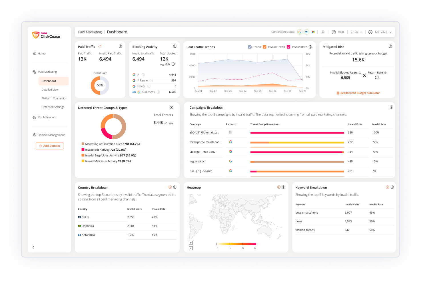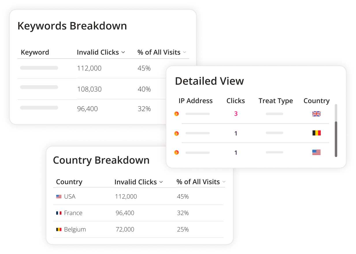 Our AI filters analyze every click on your Google, Meta or Bing Ads in real time. No bots, click farms or other invalid traffic sources allowed.